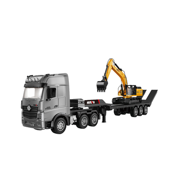 Huina 1522 1/14 RC phẳng và máy xúc phẳng vận chuyển xe tải và máy xúc đồ chơi với âm thanh trung thực ánh sáng